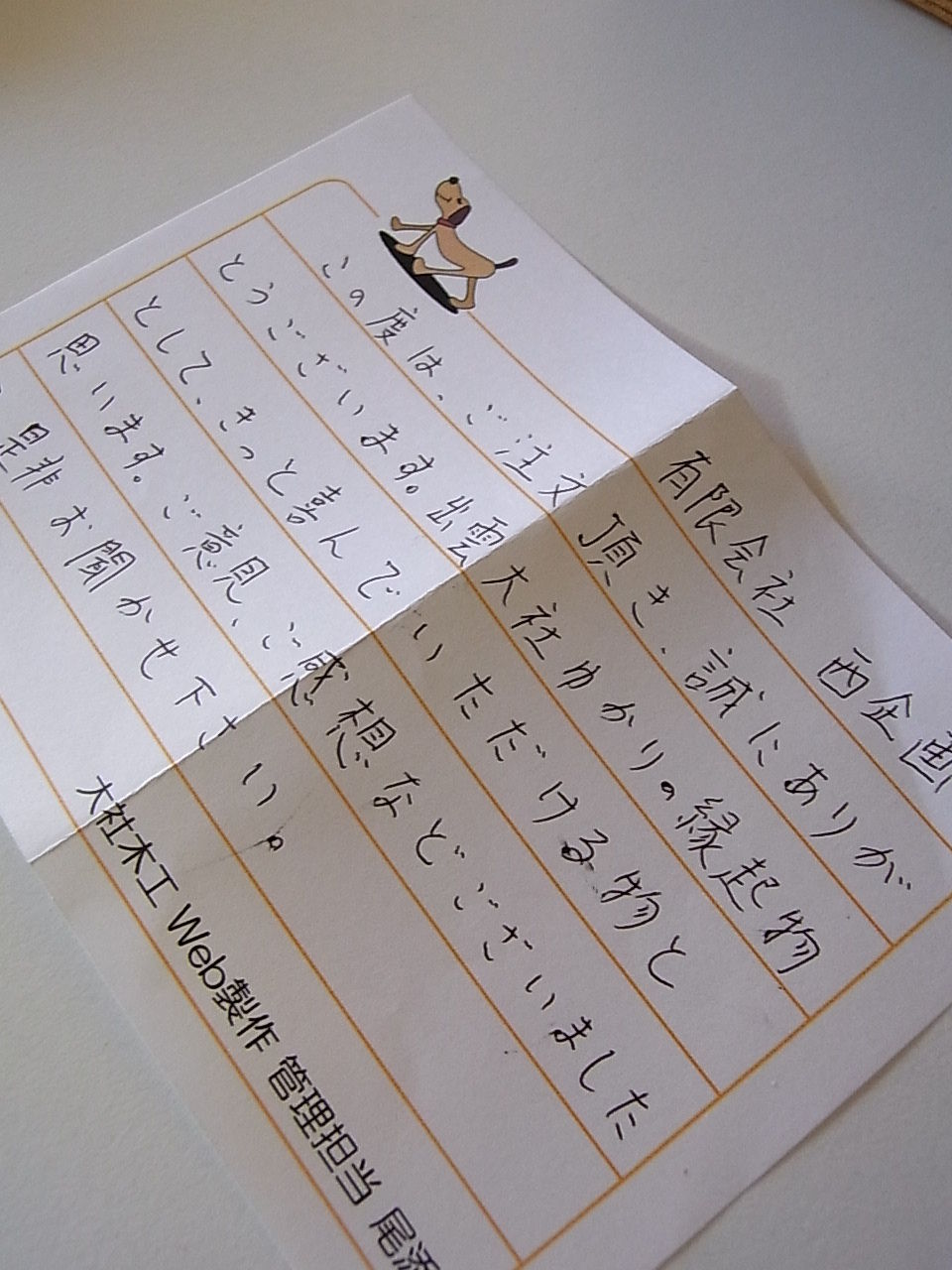 手書きのお礼状まで頂きました。ナイスホスピタリティー。