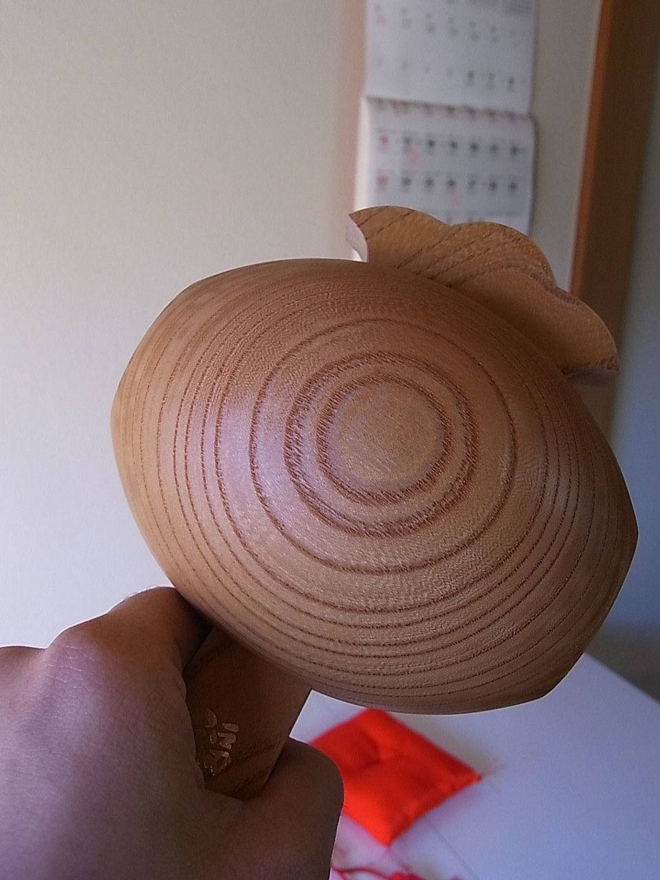 ケヤキを削って手で作られる小槌は、