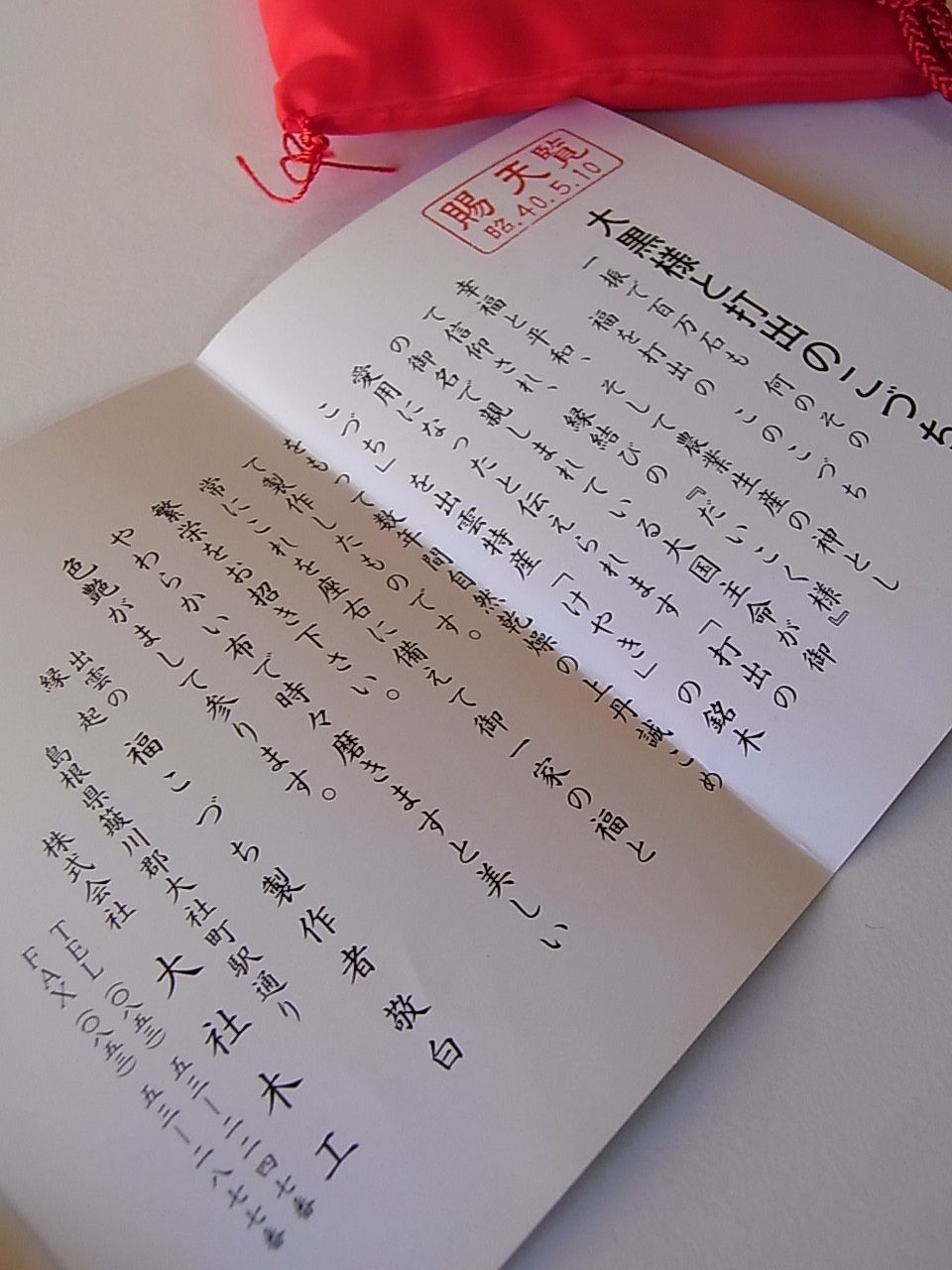 わざわざ出雲の会社にお願いしておいた、