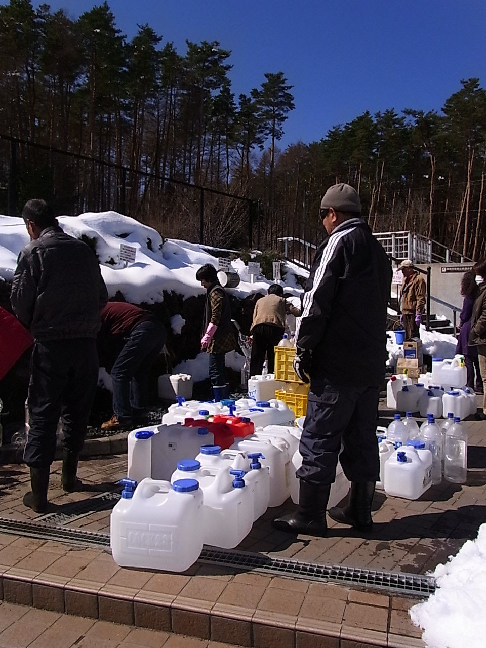 朝9時までは、一番左の蛇口からのみ取水可能。