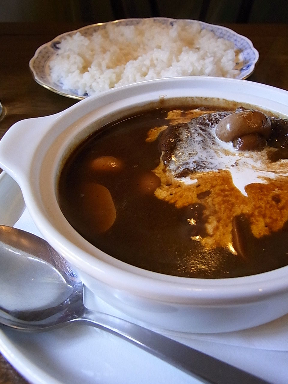 ハヤシライスと比べると、少しサラリとした舌触りのソース。