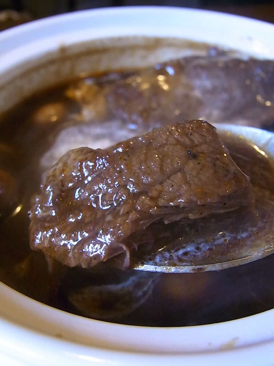 たっぷりのスープの中に、ゴロゴロ牛肉と、