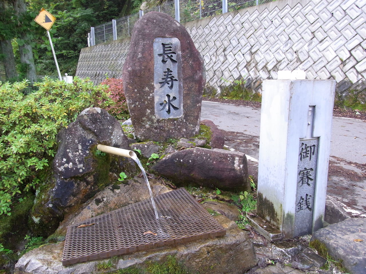 『長寿水』の石碑のすぐ脇からお水が出ています。