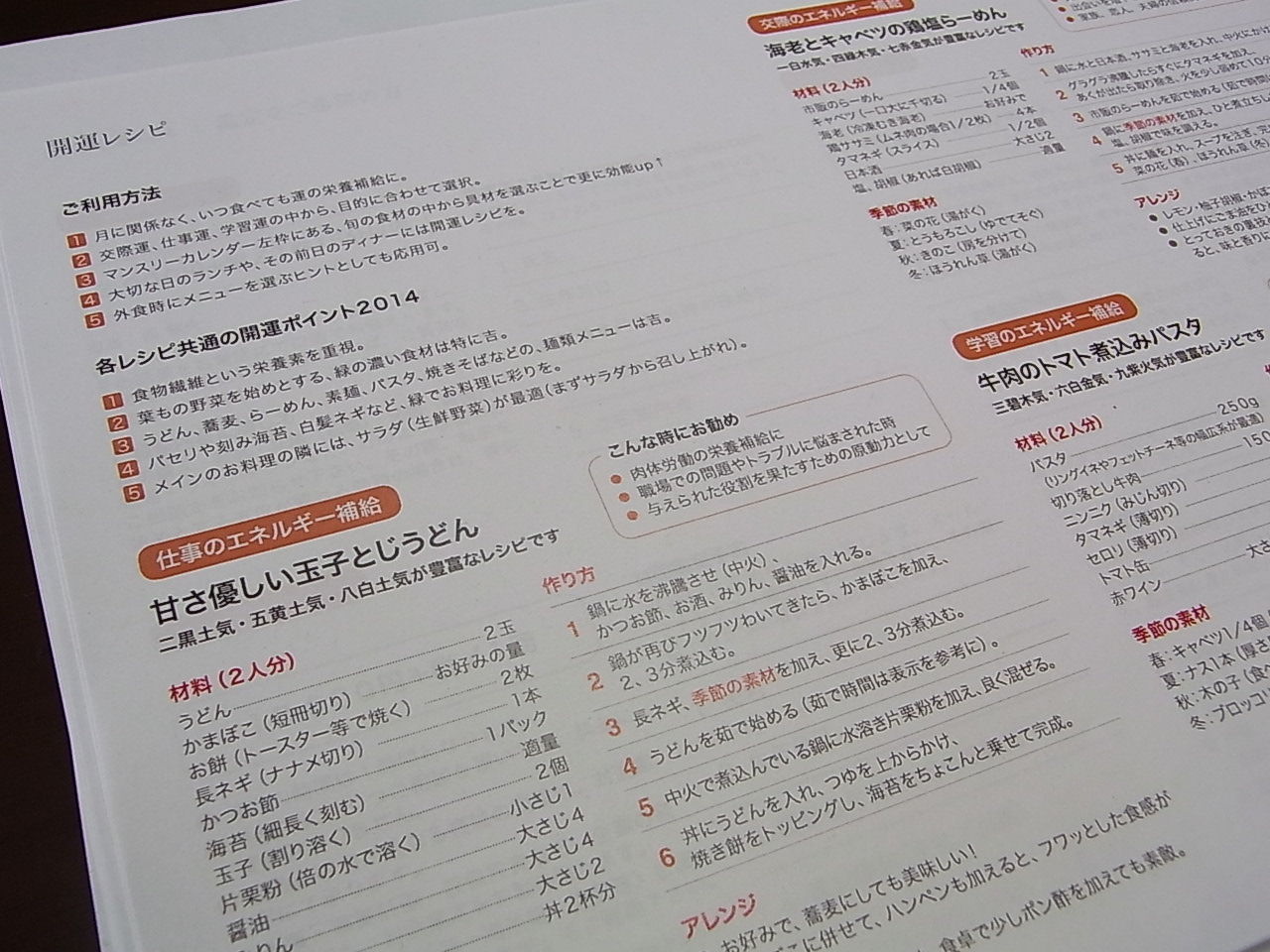 交際運・仕事運・学習運のための3つのレシピを掲載。