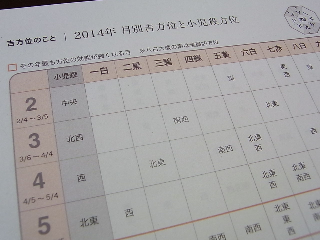 12ヵ月間の吉方位&小児殺を追加しました。