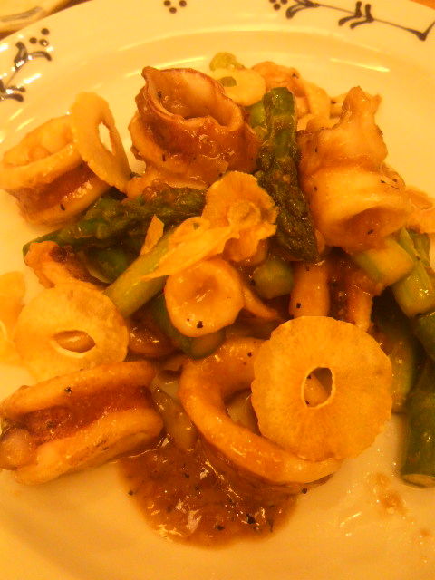 イカとアスパラのニンニク炒め。