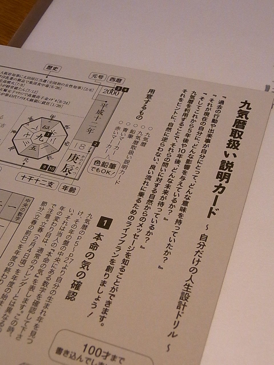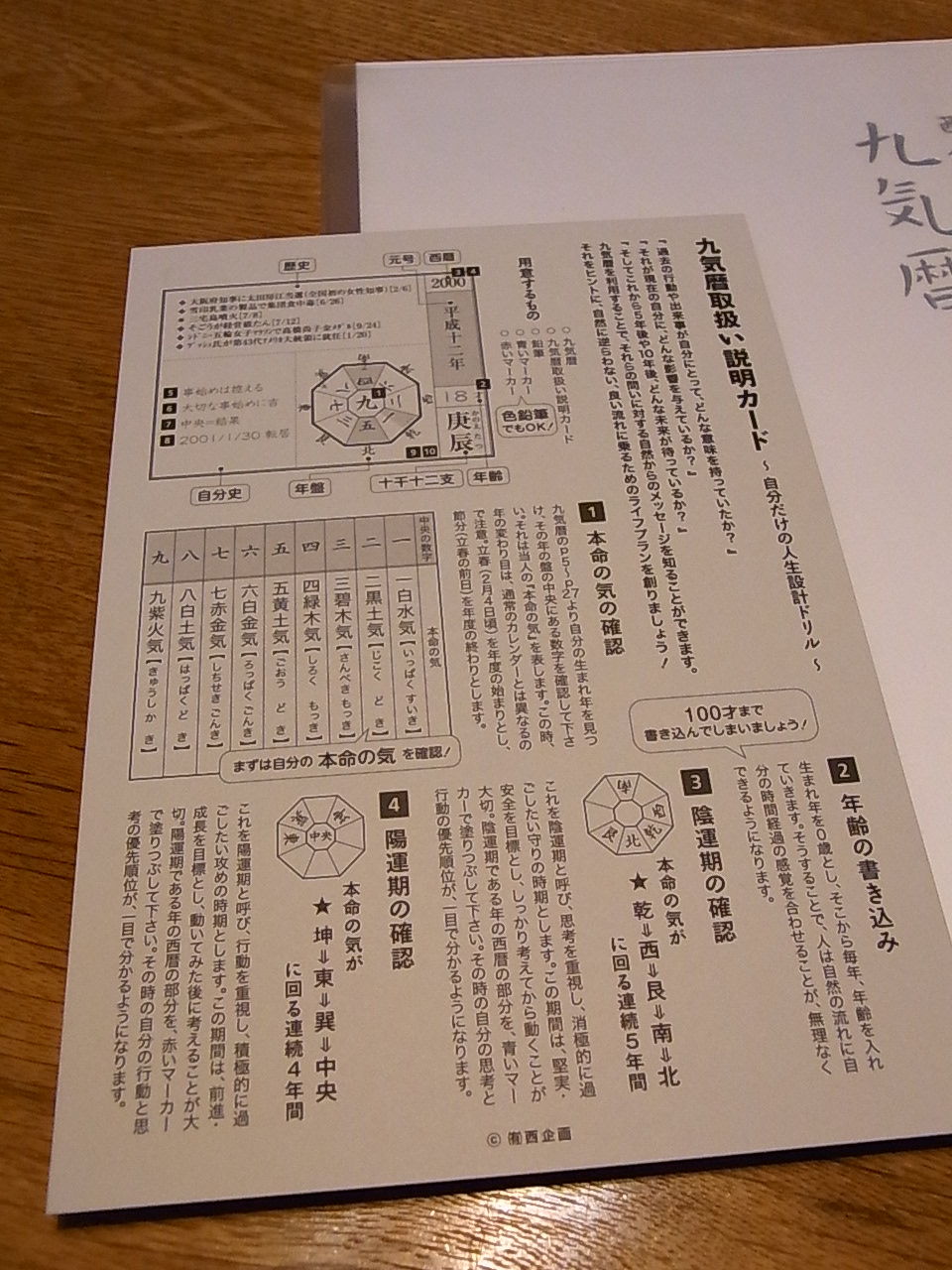 九気暦取扱い説明カード。