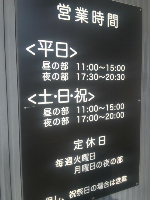 営業:11:00ー15:00 17:30ー20:30 土・日・祝は20:00まで 売切仕舞い