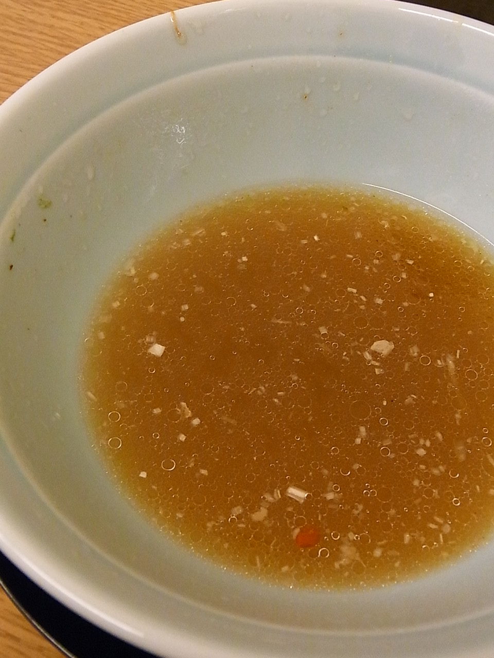 食後、塩ラーメンのスープは、こんな色に。