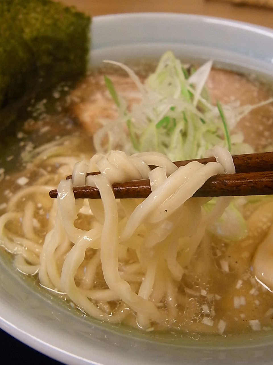 やや白みがかった塩スープは濃厚。