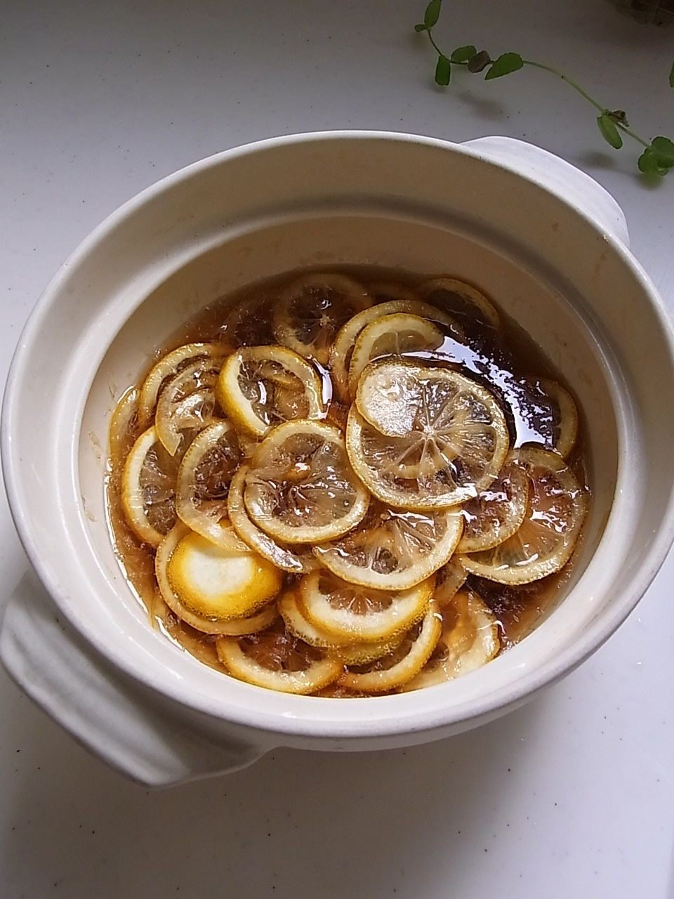 ・レモン(2個。洗剤を使って皮を2回洗ってからスライス)